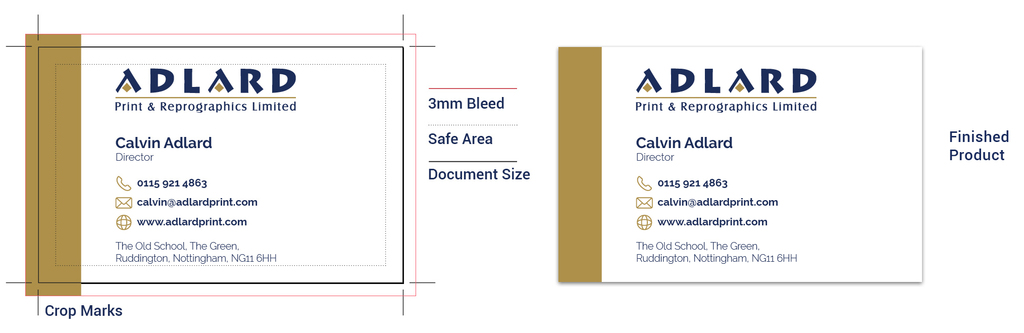 Ink that prints beyond the trim edge of the page to ensure it extends to the edge of the page after trimming. As there is a degree of movement when printing on any press, you should always create 3mm bleed on all edges where bleed is needed. Supplying your job without bleed may result in white lines when we trim it.